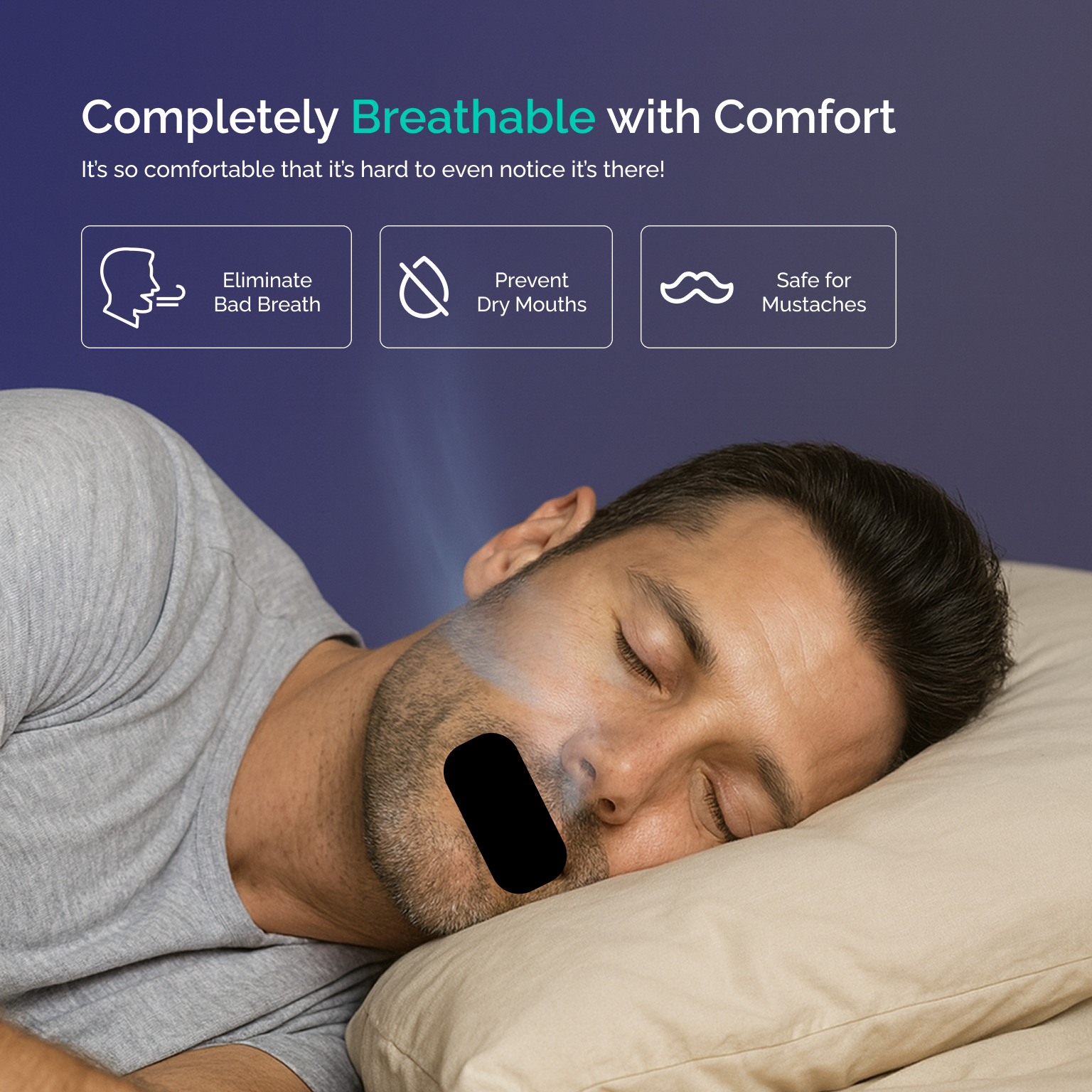 Experience rejuvenating sleep with our skin-friendly mouth strips — designed to: